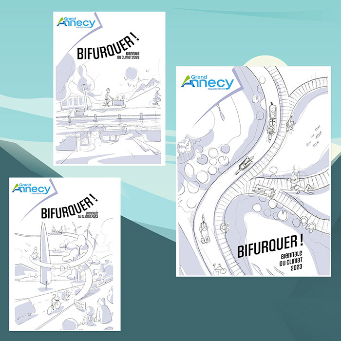 Nous nous sommes appropriés les codes graphiques et la charte de l'agglomération pour créer un visuel basé sur un principe de multiplans.