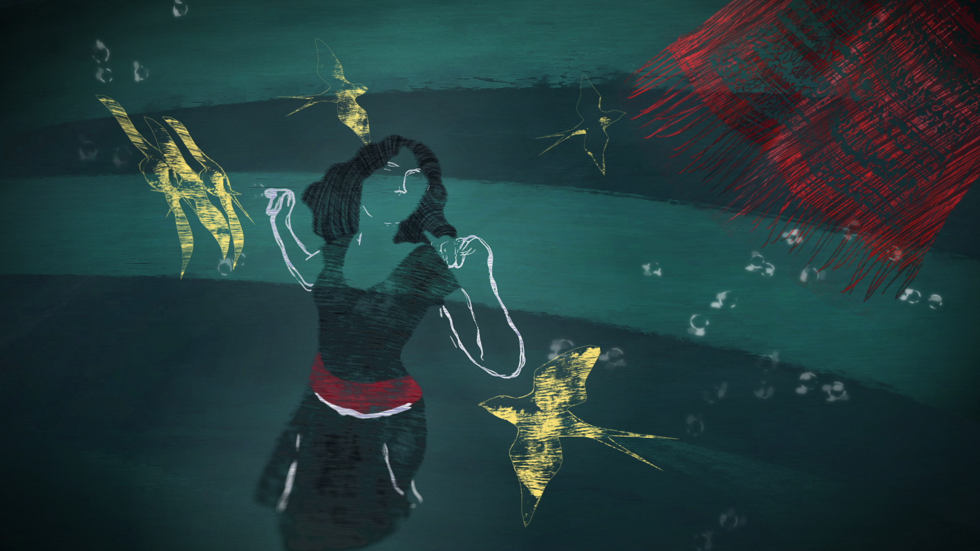 La danseuse sous-marine a été dessinée image par image en rotoscopie.