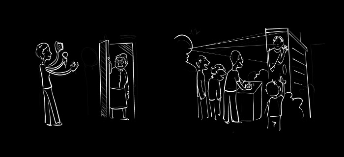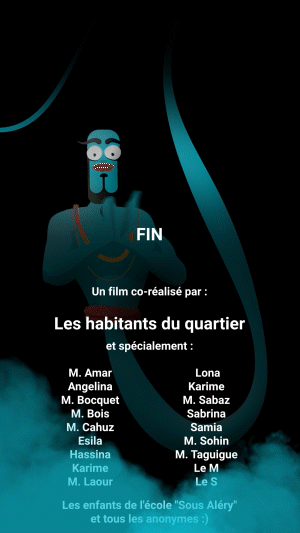 Nous avons ensuite imaginé une histoire à partir de ces séquences. Ce récit met en scène un génie qui exhausse les vœux des habitants.