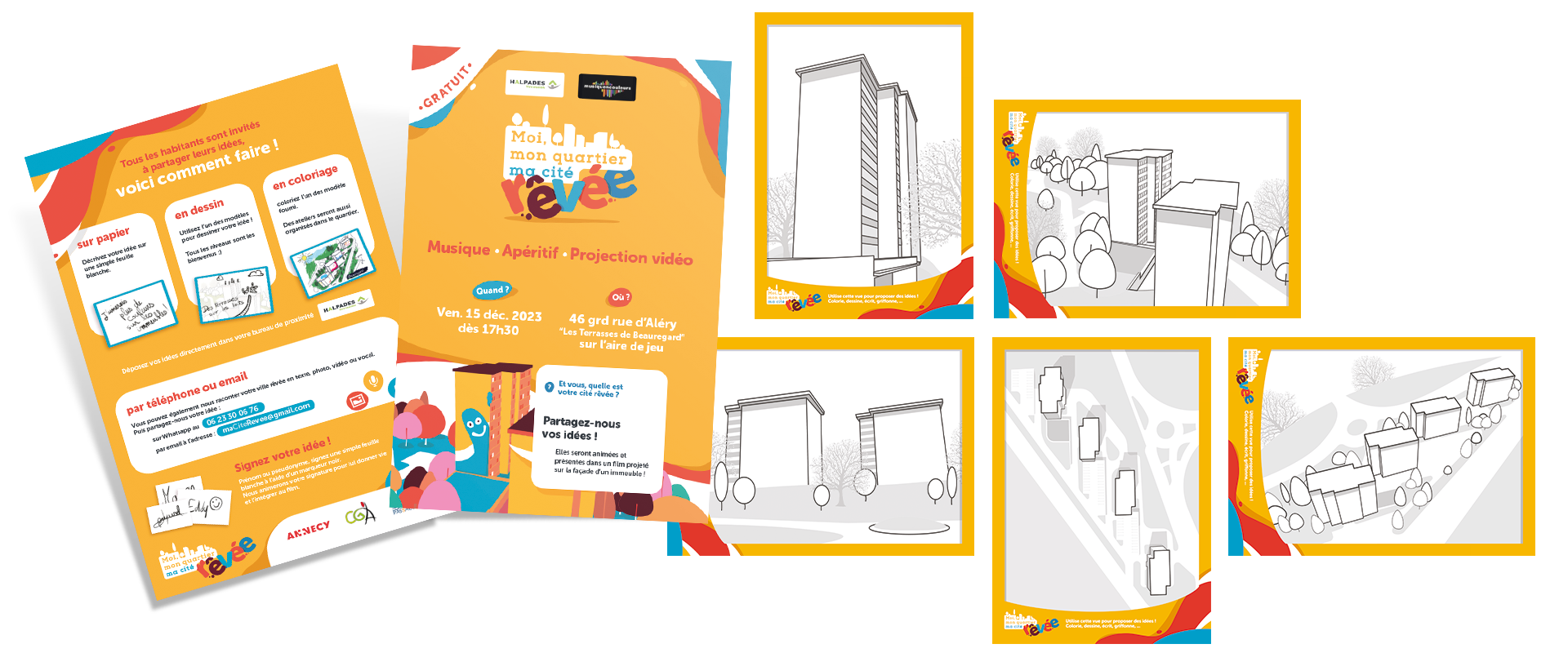 Nous avons également réalisé quelques illustrations du quartier prêtes à l'emploi pour être coloriées, annotées, commentées, etc.